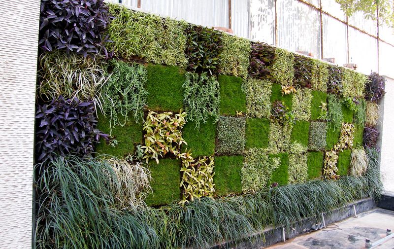 Tường cây dạng tấm chủ yếu được xây dựng bằng các sợi xơ và chiếu, lớp đất nuôi cây thường rất mỏng.