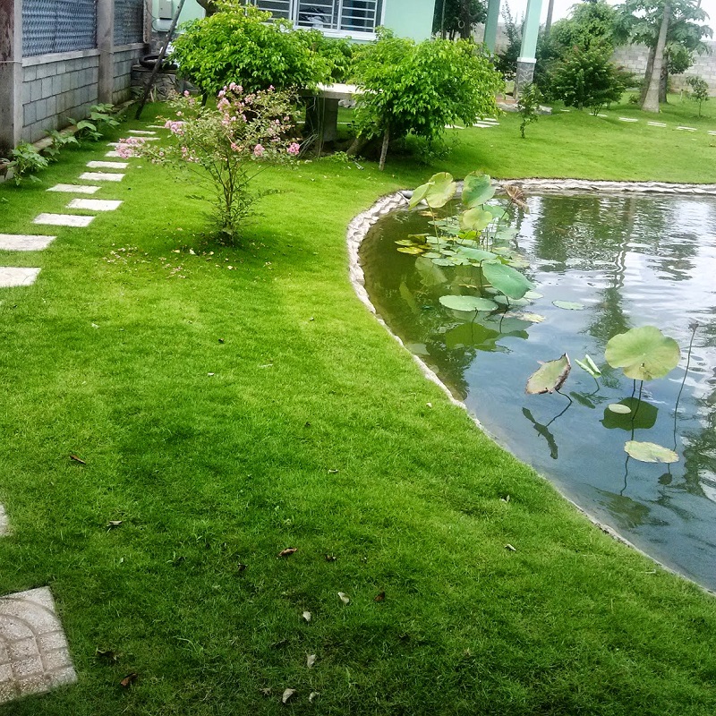 Tuy nhiên, với khoảng sân vườn có diện tích nho nhỏ trước nhà , bạn hoàn toàn có thể tự thiết kế và mua cỏ lá tre về để tự trồng. Nhưng cần phải lưu ý đến tính tự nhiên. Bạn không nên trồng cỏ lá tre quá cứng nhắc theo hàng lối mà nên có những đường nét riêng mang dáng dấp thiên nhiên. Ngoài ra, để tăng thêm tính thẩm mỹ cho không gian xanh trong sân nhà, bạn có thể trang trí thêm các loại vật trang trí khác như đèn, tượng gốm hoặc đá sỏi… Nếu như khoảng sân nhà bạn có diện tích rộng, bạn có thể lựa chọn các cây trồng ở quê như cau, dừa, khế ngọt. Bên cạnh đó, các loại cây như cây trúc quân tử dáng mảnh khảnh, thân vàng hoặc cây chuối sen hồng (thân chuối, bắp trổ hoa giống như hoa sen) cũng đang được nhiều người ưa chuộng và lựa chọn để trang trí để đưa màu sắc thiên nhiên vào trong ngôi nhà của mình.