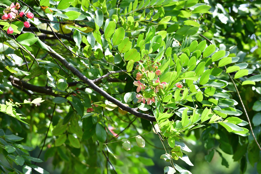 Là cây thân gỗ nhỏ, cây có tán dù, vỏ thân có màu xám nâu, không nứt có nhiều lỗ nhỏ, thịt vỏ có màu hồng dày 6-8 cm. Cành non có lông, lá kép lông chim chẵn, cuống chung dài 10-15cm, có lông, lá nhỏ có hình bầu dục, đỉnh lá hơi tù
