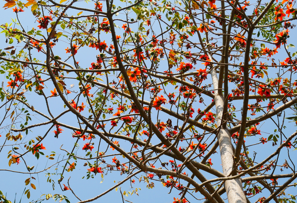 Hoa: có màu đỏ, và nở với mật độ dày. Khi rụng hết lá sau vài tuần cây sẽ tự nhú nụ to bằng cái chén và nhanh chóng nở rộ, khi cây hoa gạo nở có khi đỏ cả một góc trời. Hoa gạo gồm có 5 cánh được nở vào mùa xuân.