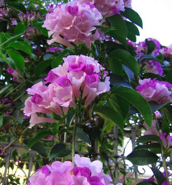 Công dụng: Dây ánh hồng là loài cây dây leo có hoa đẹp và có hương thường được trồng hàng rào, giàn leo, vòm cổng trang trí cho sân vườn thêm màu sắc. Dây ánh hồng còn là một loại thảo dược có tác dụng giải nhiệt, chống rôm sảy, hạ sốt, chữa cảm lạnh… Ngoài ra, dây ánh hồng cũng có tác dụng đuổi rắn rất hiệu quả vì mùi hương của cây.