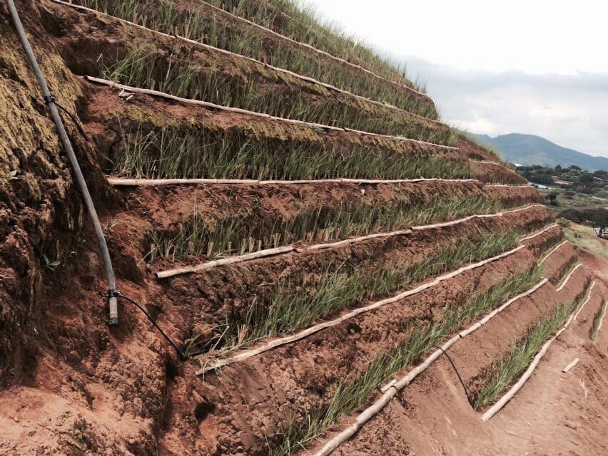 - Ổn định các thềm trên các sườn dốc: Nhằm tạo ra các luống trồng cây lương thực hoặc cây ăn quả có giá trị cao trên những vùng đất trước đây đốt nương làm rẫy nay đã thoái hóa. Khi trồng cỏ Vetiver ở sườn dốc thì cỏ sẽ phát triển thành một hệ thống chống chịu và phục hồi những khu đất bị xói mòn mạnh và làm giảm sự lan rộng xói mòn này trong thực tế.