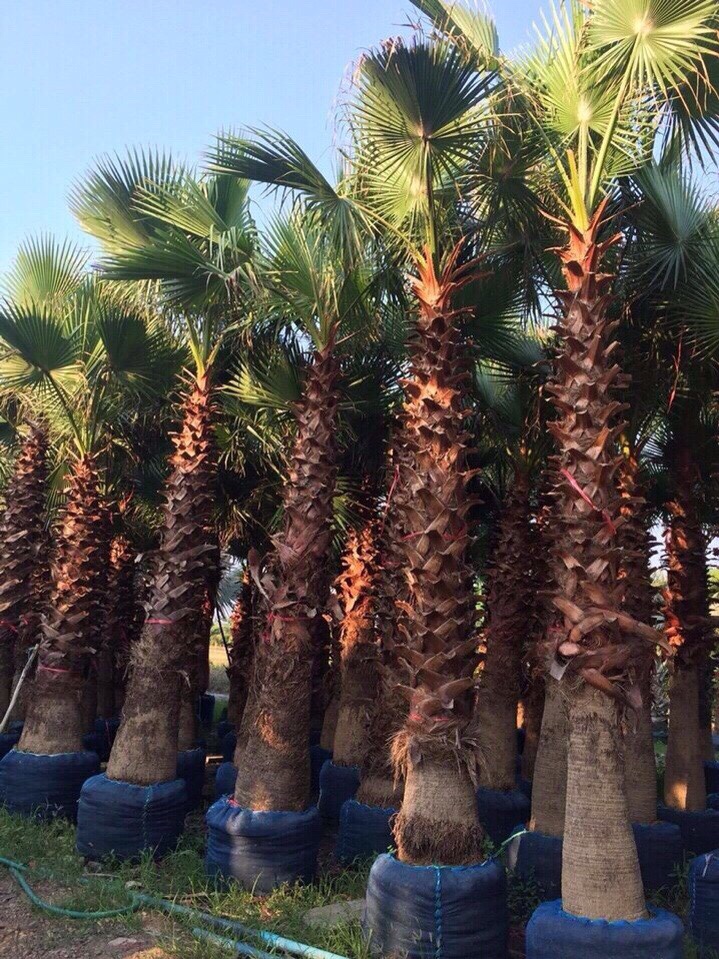 Thân, Tán, Lá: Cây thân gỗ hình trụ mọc thẳng đứng, cao đến 20m, đơn thân. Thân có nhiều gai dày do cuống lá rụng để lại, thân già nhẵn với các sẹo đều đặn. Lá hình quạt lớn, đến 2m. Cuống dài mảnh có gai dài, cứng, màu nâu bóng.