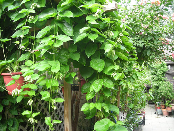 Đảm bảo đủ ẩm, úng phải tiêu nước ngay. Khi dây leo cao được 2m, bộ rễ đã phát triển mới bón thúc bằng nước giải pha loãng 1/20, tưới cách gốc 60cm. Khi cây nằm trên giàn 50cm mới cho phát triển nhánh, chủ động dẫn nhánh tỏa kín giàn. Tránh để các nhánh quấn quýt vào nhau.