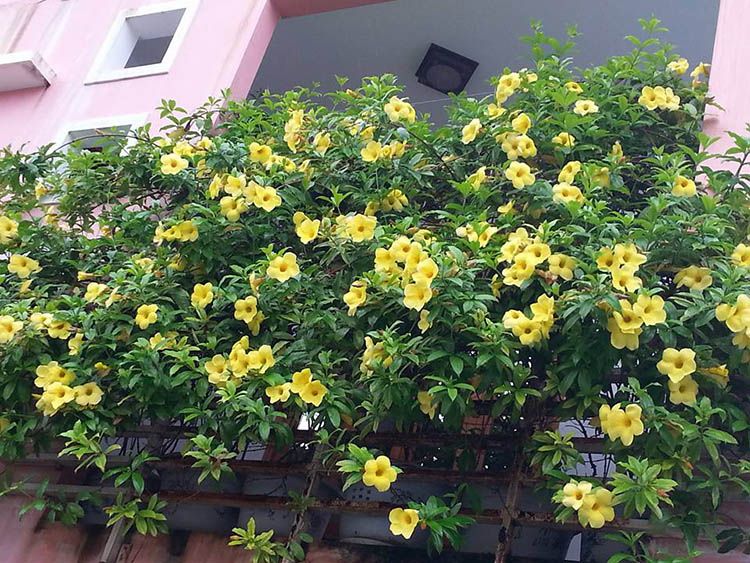 - Huỳnh anh còn trồng chậu buông rủ trên ban công nhà phố, hoặc leo lên thanh sắt, lan can ban công xóa đi sự đơn điệu,khô cứng, hoặc trồng từ sân thượng cho cây buông tự nhiên che mát và làm duyên cho các tầng dưới.