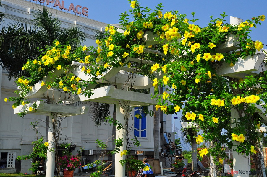 - Huỳnh anh trồng thành giàn tạo bóng mát, sinh động và cuốn hút.