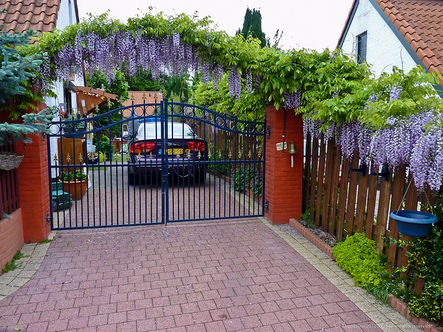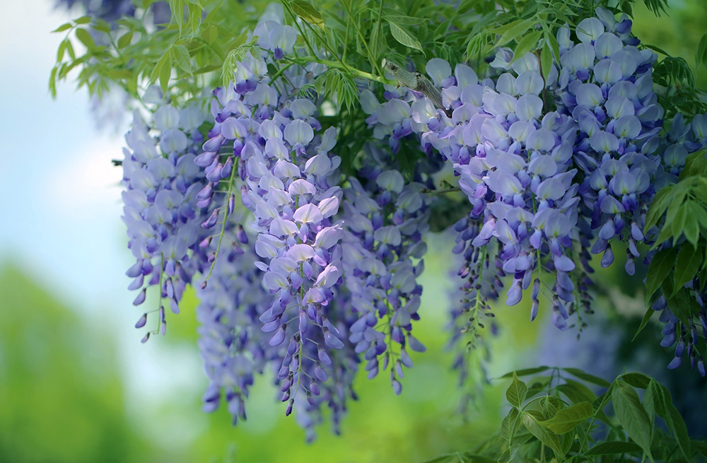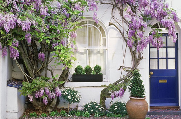 Các thiết kế cổng nhà, khuôn viên, tường ngõ, ban công, những nơi đón vạn sự cho gia đình đều được các kiến trúc sư Trung Quốc và Nhật Bản chọn Hoa tử đằng làm loài cây trang trí chủ đạo.