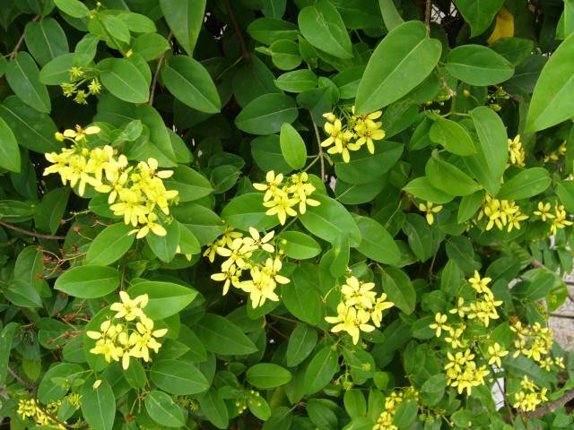 Dây kim đồng phổ biến trồng hàng rào, giàn leo, vòm cổng nở hoa màu vàng nhiều và đẹp trên nền lá xanh mướt.