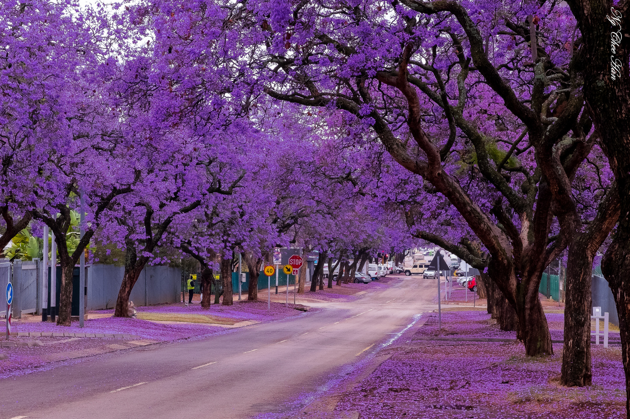 Trên những con đường trồng hoa phượng tím hai bên, vào mùa hoa nở trông vô cùng bắt mắt bởi vẻ đẹp riêng biệt mà nó mang lại. Bông hoa nở rực rỡ và rụng đầy đường mang lại một vẻ đẹp tím biếc ngập tràn vừa rung động lại ma mị một cách khó tả.